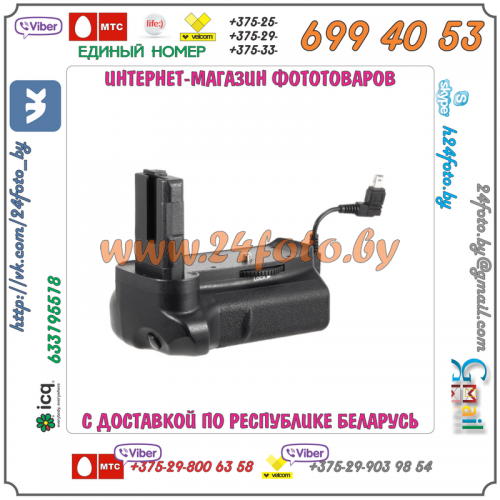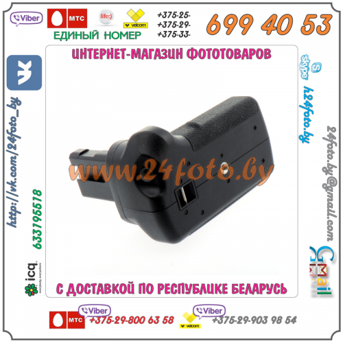 Батарейный блок (бустер, вертикальная ручка, батарейная ручка)- это дополнительный отсек для батарей, прикрепляемый к корпусу камеры. Отсек вмещает два стандартных аккумулятора или шесть батарей типа АА (опционально).