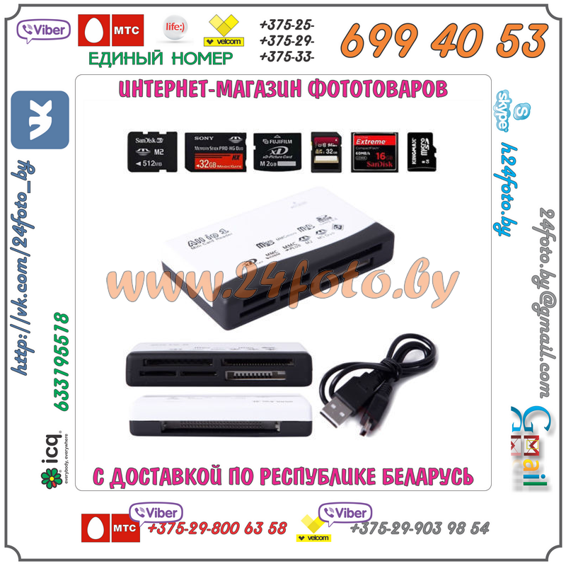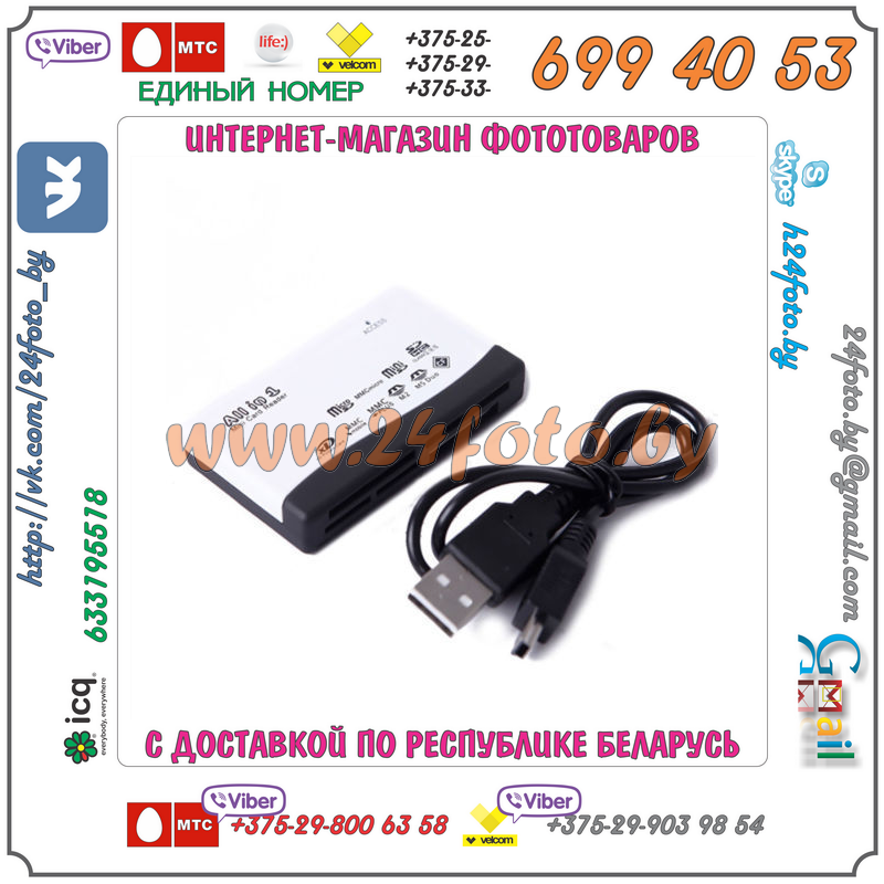 Картридер предназначен для считывания информации с карт памяти следующих типов: SD, mini SD, micro SD, CF, MMC micro, MMC mobile, MMC plus, XD, M2, MS Duo