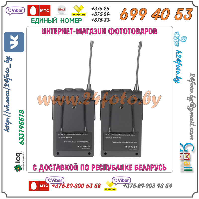BOYA BY-WM6. Беспроводная микрофонная система, предназначена для работы с DSLR и видеокамерами. Ресивер и трансмиттер отличаются своим небольшим весом и удобством в работе. Особенности: - Микрофонная система предназначена для работы с ENG/EFP, DSLR и видео камерами - Обеспечивает высокое качество звукозаписи - 48 УВЧ каналов - Система проста и удобная в работе, оборудована дисплеем.